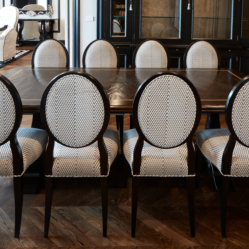 Without skipping a beat, Mark moves from an intricate design framework to impeccable finishing. If you neglect the design details and luxury finishes, your chair may as well be store-bought. Using only the highest quality designer fabrics from Europe and throughout Australia, specialist wood, fine detailing and fine upholstery finishes, your chairs go from brilliant designs to impeccable works of art.