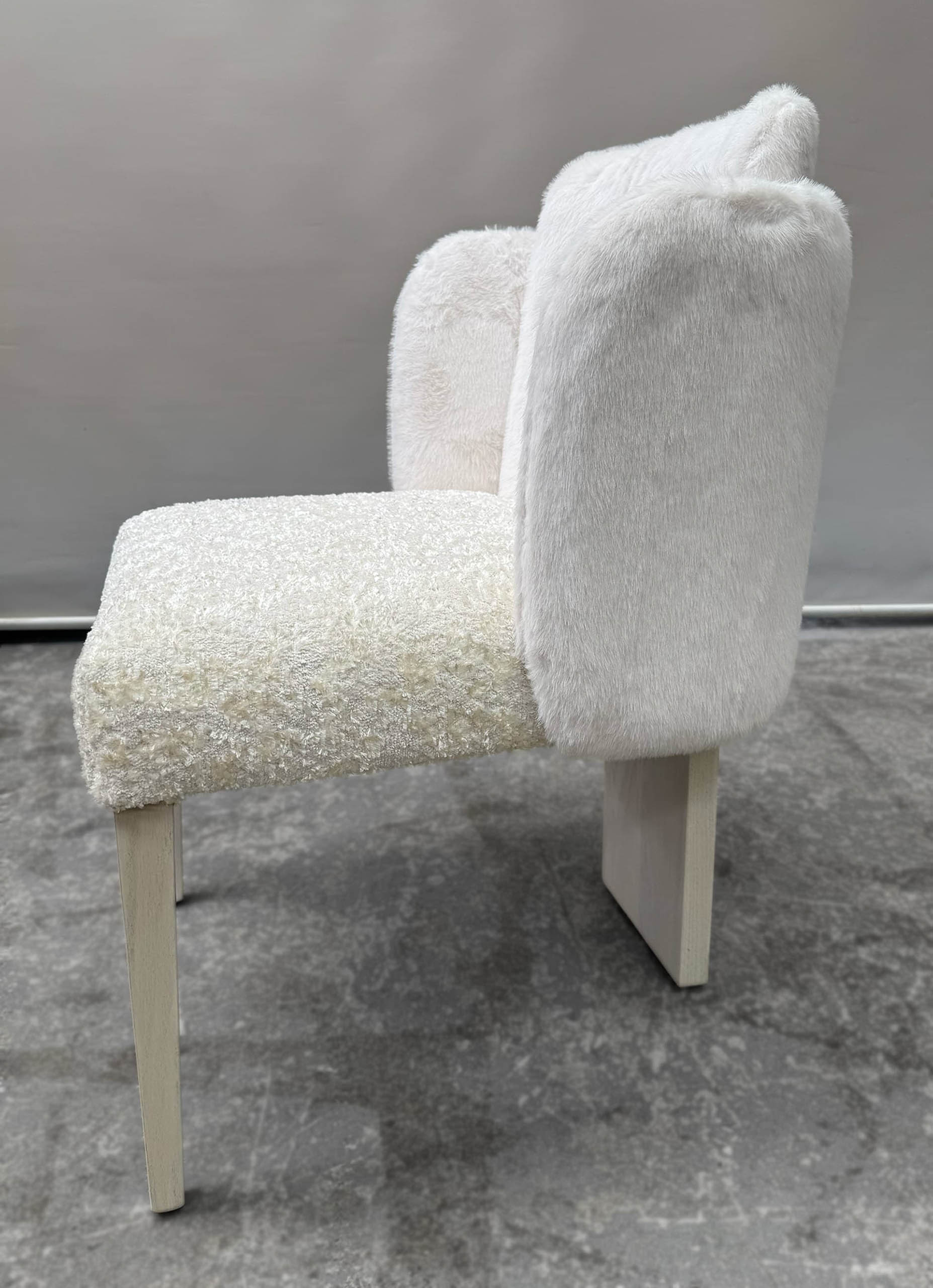 The bespoke dressing chair combines sculptural elegance with ergonomic comfort. Its gently curved backrest envelops the seat, offering support while enhancing a refined, modern interior. Handcrafted from high-quality solid wood for durability and strength, the chair features tapered legs with subtle geometric detailing, blending function with style. Designed by luxury interior designer and furniture manufacturer Mark Alexander, it is a statement piece of luxury modern furniture.