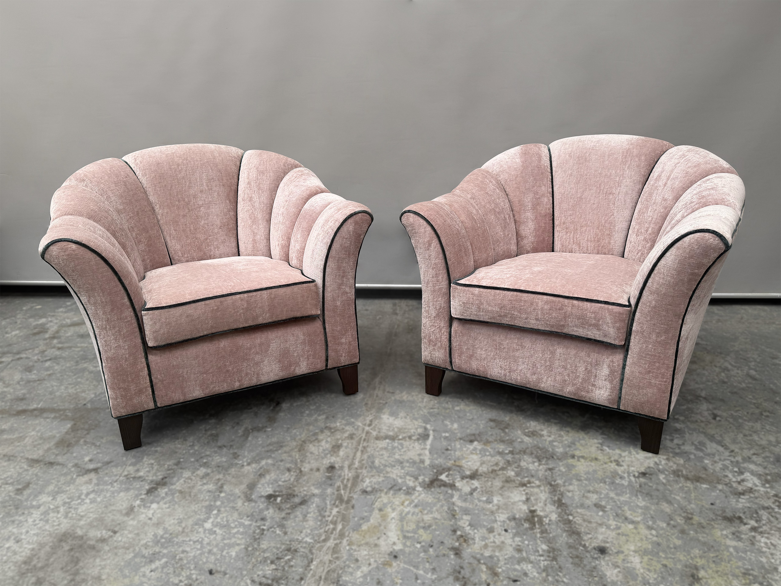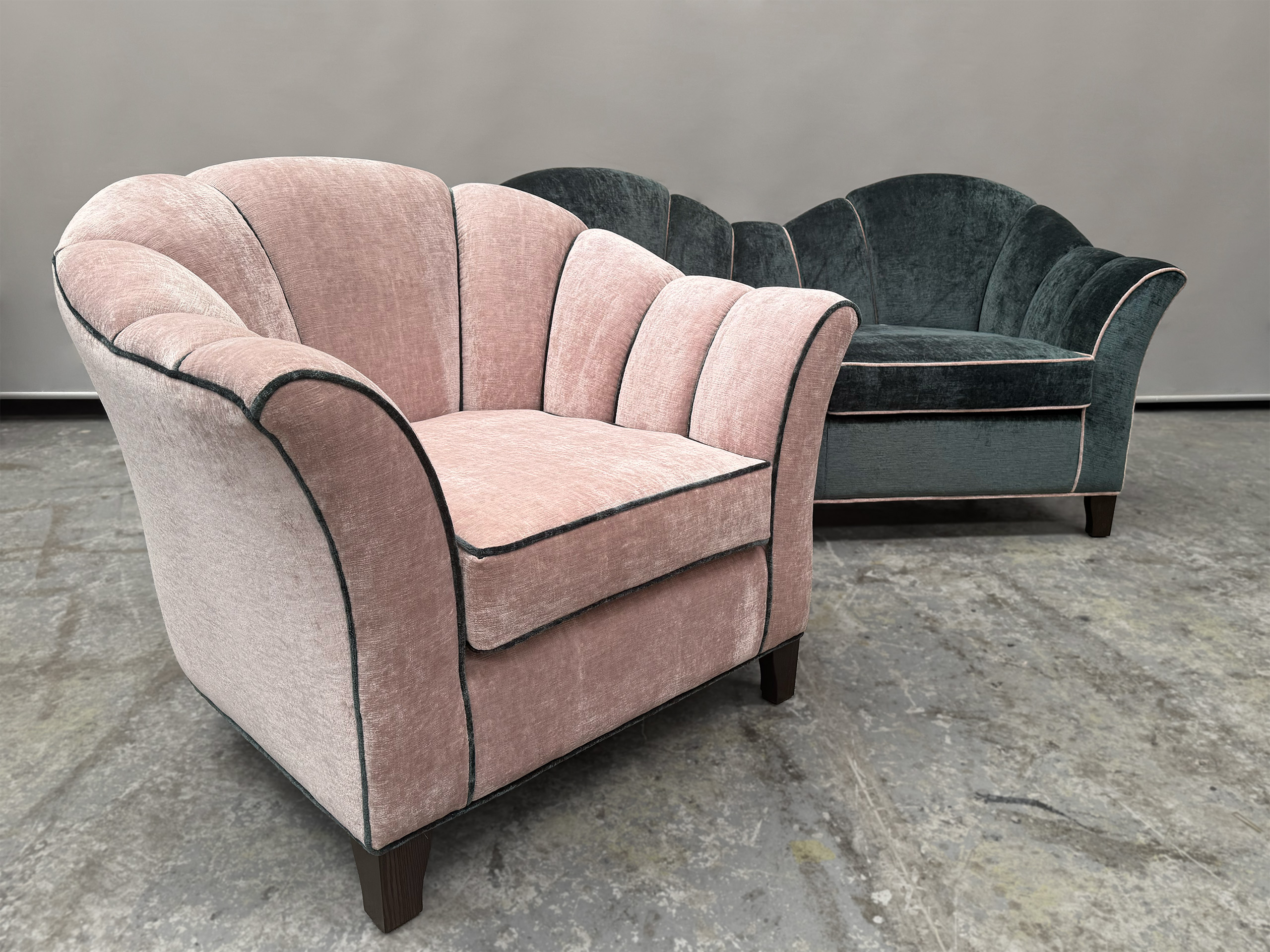 This custom made Art Deco armchair features a streamlined design that perfectly balances modern aesthetics with exceptional comfort. This Australian made armchair showcases gently curved backrests that provide excellent support, while the elegantly shaped armrests harmoniously complement the overall silhouette, enhancing both functionality and visual appeal.