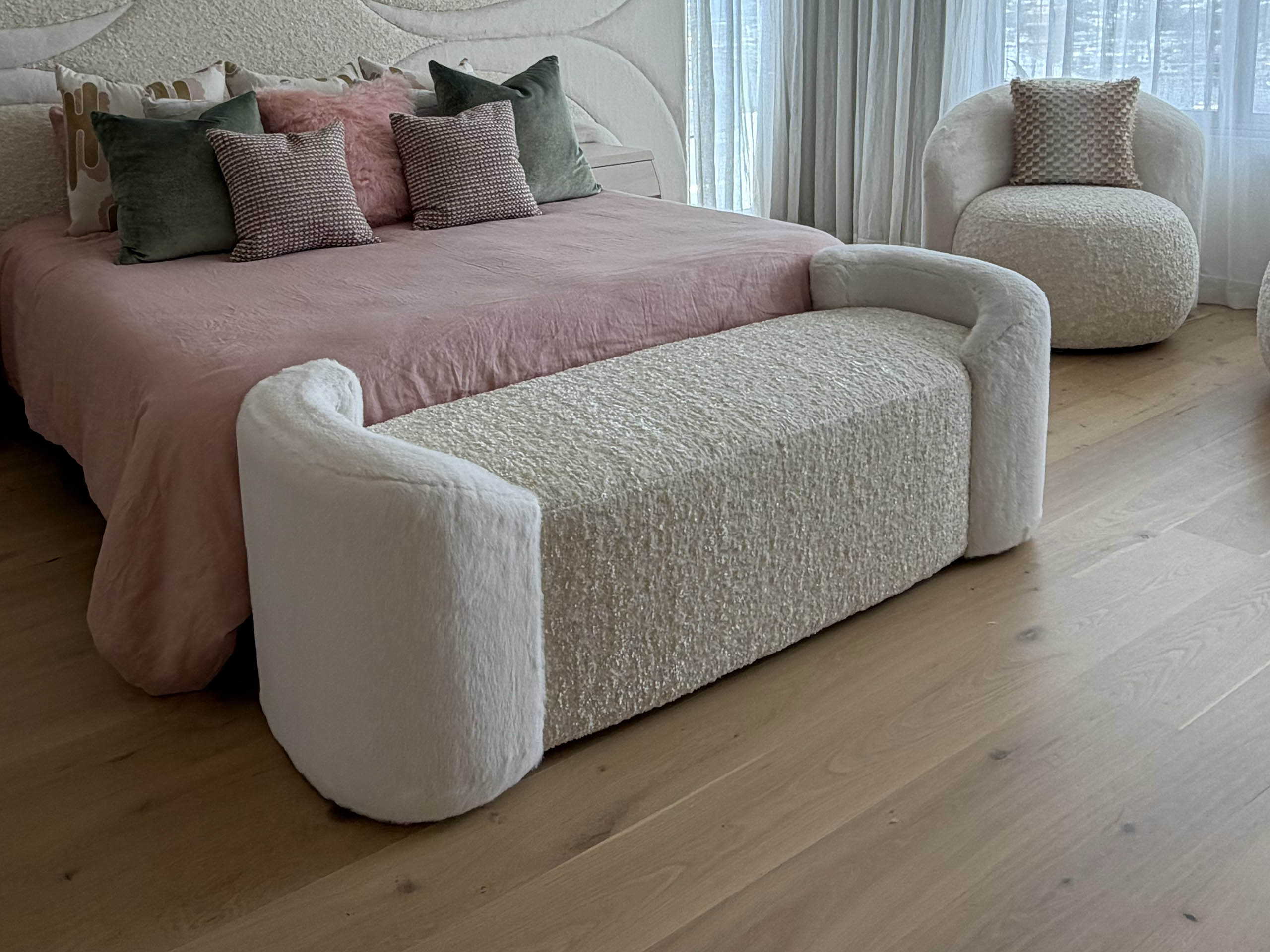 Each ottoman is custom designed and entirely made in Australia to a premium standard of quality and finish. Dimensions, colour, and finish of our luxury furniture can all be custom made to your specific requirements, with a wide range of luxurious fabrics or leathers and frame colour options available.